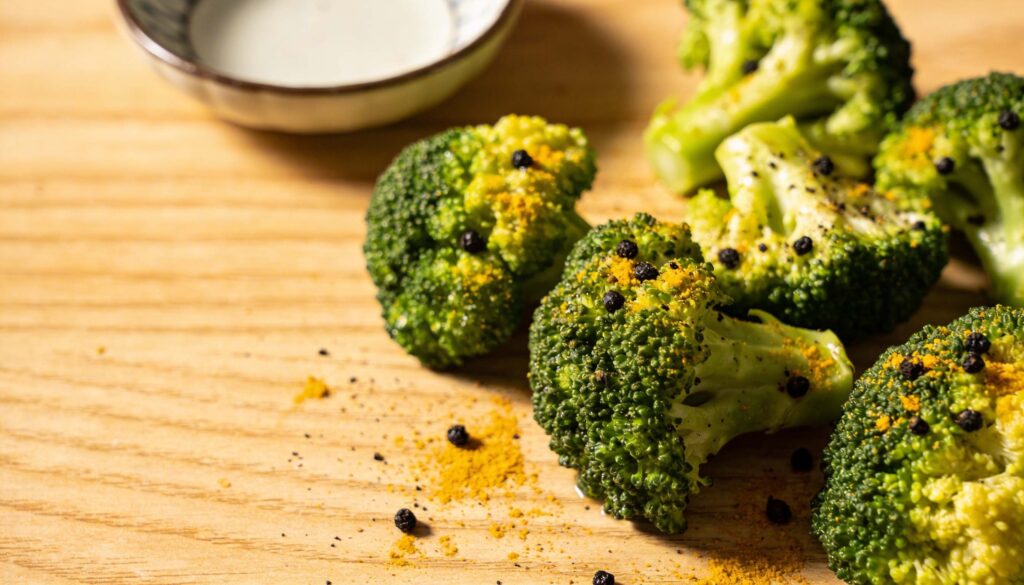 - Mezcla brócoli al vapor con pimienta negra y un toque de cúrcuma para una guarnición sencilla pero sabrosa.